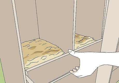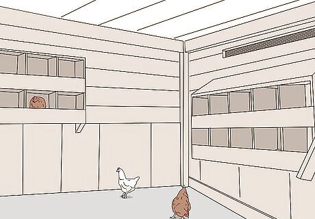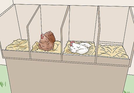 Provide private nesting boxes for your hens. Hens prefer to lay their eggs in a private area. Place nesting boxes in your chicken coop to give your chickens a safe place to rest and lay their eggs. Add 1 box into your coop for every 4 chickens. Purchase a nesting box from a farm store or make your own. If you make your own box, aim to make it a 14 in (36 cm) cube.