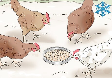Give your chickens scratch in the fall and winter to keep them warm. Chickens require extra protein in the colder months to keep them warm. If you aren’t already feeding your hens scratch feed, give them some every second morning to provide them with extra nutrients. This will likely increase your chickens’ laying capacity significantly.