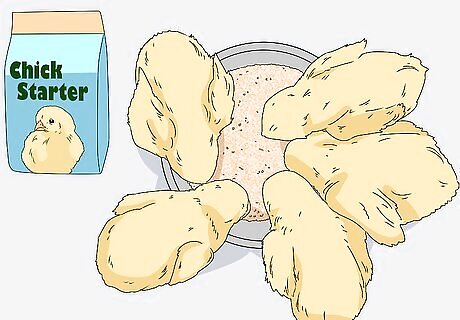 Give hens chick starter feed until they lay their first egg. This type of feed is specially formulated to develop the egg tract (duct or tunnel) and frame of the hen, and will help to produce a strong laying hen. Follow the instructions on your feed packet, as each brand of feed will have different portion sizes. On average, hens require about 110 grams (0.24 lb) of feed per day. Purchase chick starter and chicken feed from a vet or poultry store. Avoid buying more than a 2 month supply of chick starter feed, as it starts to lose its nutritional quality after this time. Hens normally take about 6 months to lay their first egg, but some don’t start laying until 8 months.
