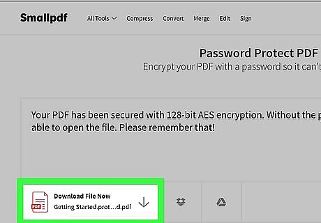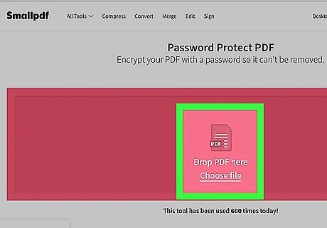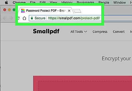 Open SmallPDF's protection page. Go to https://smallpdf.com/protect-pdf in your web browser. This website will allow you to add to your PDF a password that must be entered before the PDF can be opened.