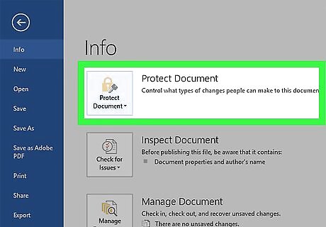 Click Protect Document. This option is in the Review toolbar. Doing so opens a new window.