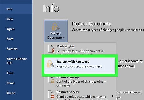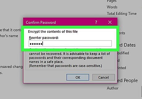 Enter a password. When prompted, type in the password that you want to use to lock the document.