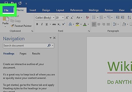 Click File. It's in the top-left corner of the window. This will open the File page.
