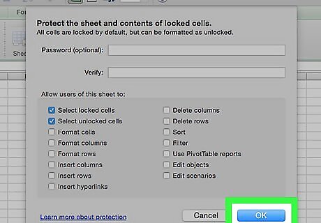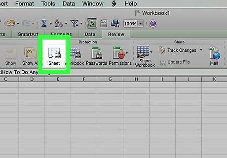 Click Protect Sheet. It's on the right side of the Review tab's toolbar. Doing so will open a new window. If you want to password-protect all pages in the Excel workbook, click Protect Workbook' instead.
