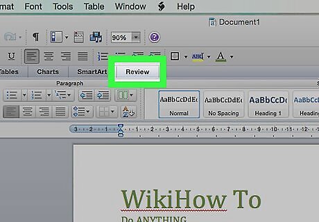 Click the Review tab. It's in the upper-right side of the Word window. A toolbar will appear below this tab.