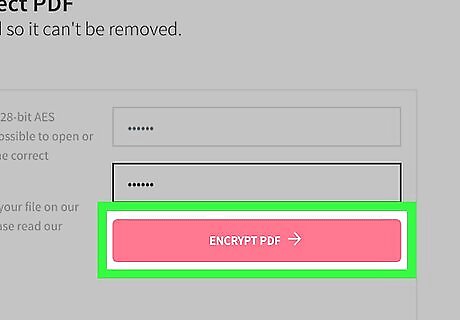 Click ENCRYPT PDF →. It's a red button below the password text fields. The password will be applied to your PDF.