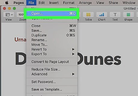 Open an iWork document. Double-click the iWork document that you want to protect to do so. Apple's iWork suite of software includes the following programs: Pages - Used for rich text documents; similar to Microsoft Word. Numbers - Used for spreadsheets; similar to Microsoft Excel. Keynote - Used for slide presentations; similar to Microsoft PowerPoint.