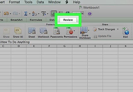 Click the Review tab. It's at the top of the Excel window. A toolbar will appear below the Review tab.