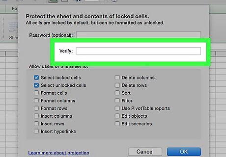 Re-enter the password. Re-type the password into the "Verify" text box. This will ensure that the password was correctly entered the first time.