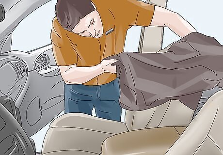 Cover the floors and seats to protect the upholstery, if desired. If you’re worried about getting the seats of your new car dirty, purchase seat covers that slip onto the seats and protect them. Many of these seat covers are washable, making it easy to rinse out any spills or dirt when the seat does get dirty. Seat covers are a good idea if you have children, or if you just want to protect the driver’s seat since it's the most used.