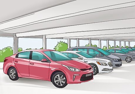 Opt for covered parking whenever possible. This will protect your new car from potential rain, sun, and wind damage. Park in a garage at home if you have one or look for other covered parking that will protect your car from unwanted weather. Try not to park your car in harsh sunlight because this will fade the paint color over time.