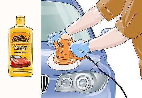 Polish the car to give it a super glossy appearance, if desired. While it’s not required, polishing the exterior of your car is a good way to give it some extra shine. Purchase a car polish and cover a clean cloth or the pad of a dual-action polisher with the polish. Use circular motions to apply the polish, covering the entire area evenly in a thin coat. If you’re not sure which type of car polish to use, ask the car dealer or company which polish they recommend for your specific car. Follow the instructions on the polish container to be sure you're applying it correctly. Polish your car 3-4 times a year, if you'd like.