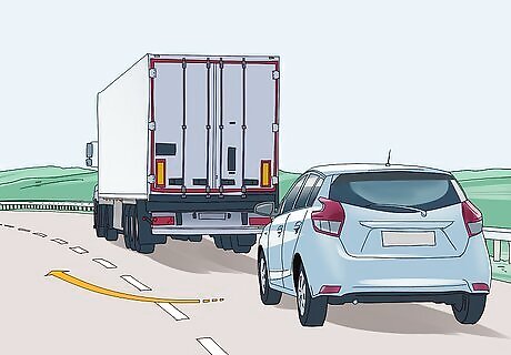 Steer clear of semi trucks to avoid rock chips in your windshield. If you're driving behind a semi or other large truck with lots of tires, try to get into another lane or stay as far back as you can from them. Larger trucks tend to kick up rocks which can dent your windshield and cause cracks. Avoid driving on gravel whenever possible to avoid potential rock chips.