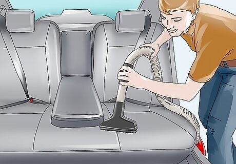 Vacuum out the car regularly to get rid of dirt and dust. Use a handheld vacuum to clean out your car if you have one, or visit a local gas station to use a car vacuum that will reach the nooks and crannies of your car. Removing as much dirt as possible regularly will keep your new car clean and dust-free. Plan to vacuum out your car once a week or twice a month, depending on how dirty it gets. If you’re worried about lots of crumbs getting in the car, consider creating a no-food rule.