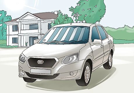 Use a windshield shade to prevent damage to the dashboard. Whenever you leave your car out in the sun, put a shade up in the windshield to help block out the light. Sunlight can damage the materials in your car like vinyl, plastic, or leather, so blocking out as much light as possible when you’re not driving is a good way to help preserve your new car. Look for a windshield shade that's the right size for your specific type of car. Not only will a car shade help protect the interior from sun damage, but it will also keep your car cooler during the hotter months. Look for a car windshield shade at your local auto parts store or big box store.