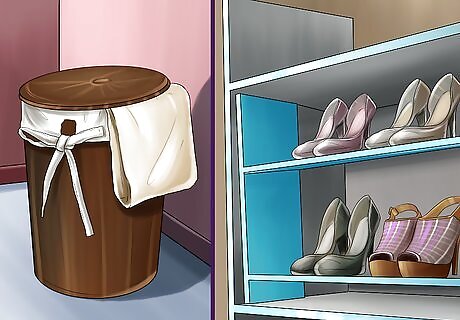 Look for bedroom dangers. Birds like to hide or nest in small spaces. Even seemingly non-hazardous items such as shoes can expose your bird to harm. Covering potentially comfy hiding and nesting spots can prevent you or other animals from accidentally harming your bird. Make sure laundry is in a covered basket or container. Hang and store clothing in closets and dressers so your bird can’t access them as easily. Clothing may have threads or embellishments that can entangle your bird. Store shoes in containers, a closet, or on a shoe rack to prevent chewing and hiding in them. Cover or hide any wires as you would in other rooms. Make sure your bird can’t access perfumes, sprays or lotions that can access and which may harm your bird. Make sure you haven’t accidentally closed your bird in a closet or drawer when you leave the room. Avoid sleeping with your bird because you can easily roll over and crush it.