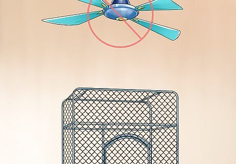 Avoid the kitchen and bathroom. Recognize that the kitchen and bathroom present dangers for your bird. In the kitchen, fumes from non-stick cooking surfaces, self-cleaning ovens, open flames and sharp knives can harm your bird. Changes in temperature and exposure to toxic chemicals such as hairspray can harm or poison your bird in a bathroom. If possible, place the cage in a room that doesn’t pose these hazards.