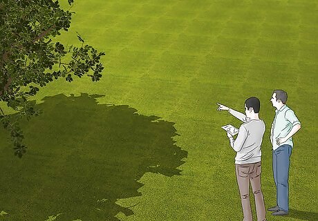 Estimate the tree’s critical root zone by looking at its branches. For large deciduous trees, the tree’s root system extends horizontally through the soil beneath the tree in all directions approximately as far as its branches. Mark the perimeter on the ground by driving in half a dozen tent stakes or some other kind of marker. Aim to protect at least 50 percent of the root system from construction vehicles in order to ensure the tree will survive construction.