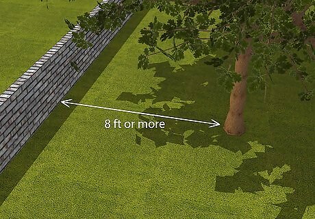 Minimize root damage if a trench must be dug near a tree. Digging trenches near a tree—e.g., for underground piping—can easily damage a tree’s root system. Whenever possible, dig trenches outside of trees’ TPZ. If you must dig within the TPZ, ensure that the trench is at least 8 feet (2.4 m) away from the tree trunk and cut through as few roots as possible. Once the piping or wiring has been laid underground, fill in the trench as soon as possible to avoid extra stress on the tree. Damaged roots will weaken the tree’s overall stability and will also render the tree susceptible to fungi and diseases.