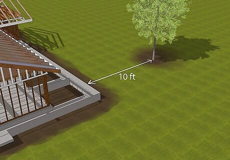 Hire an arborist or landscape architect to identify trees to remove. If some of the trees are dying or are not structurally sound, they may need to be removed instead of saved. An arborist or landscape architect can take a look at the planned construction project and site and advise you as far as which trees need to be transplanted or removed. Be especially conscious of older, mature trees. These trees often pose a risk to structures if they fall. They also have a harder time adapting to environmental changes than younger trees. Remove any trees taller than 20 feet (6.1 m) that will be within 5 feet (1.5 m) of your new construction.
