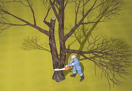 Remove old and unhealthy trees that can’t be saved. If there are any mature trees that are hollow or rotting in the construction zone, they won’t survive being transplanted. The best option in this case is simply to remove the trees. If your landscape architect or arborist isn’t sure of how to dispose of old trees (especially if the trees are large), contact your county or city authorities and ask about tree disposal. The county may send a crew to the site to chip the tree. The chips can be burned or used as mulch.