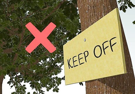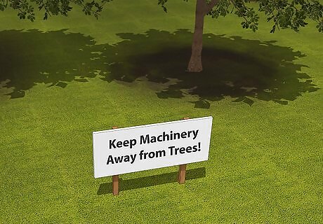 Post signs to communicate that the tree is to be protected. This can help to warn construction crews, and it will reduce the likelihood of damage from machinery. The more professional the signs look, the more effective they’ll be. Printed and laminated sheets of paper or heavy plastic signs will be most effective. The text can read “Do Not Enter!” or “Keep Machinery Away from Trees!”