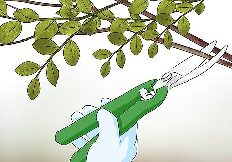 Prune damaged trees to prevent the tree from dying. Every week, look for signs of tree damage, such as scorched leaves, drooping or dead branches, excessive needle shedding, or excessive winter dieback. If you notice any areas of the tree that look dead or damaged, cut the affected branches off with a pair of pruning shears. Some trees may take months or even years to show signs of internal construction damage.