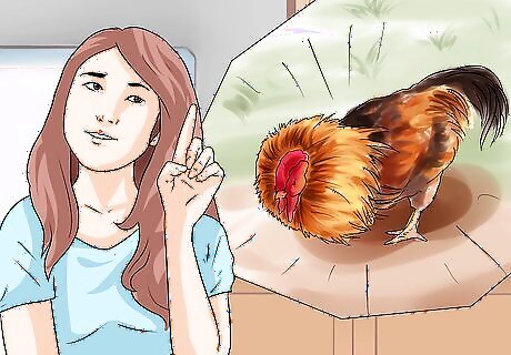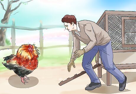 Move with haste. You shouldn't rely on avoiding your rooster as this is only a temporary solution to dealing with an aggressive animal. However, if you simply need to get in and out of the coop or chicken enclosure and don’t have time to do some rooster behavior-adjustment training, its fine to use some avoidance maneuvering. Move at a steady pace and give him a wide berth.