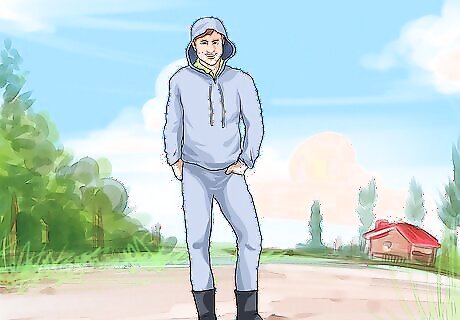 Dress for a beak and chicken-feet resistance. Wear leather gloves for protection, as well as long-sleeved shirts and pants when dealing with an aggressive rooster. Wear boots too, as roosters tend to be much shorter than humans and default towards fighting with their feet. Make sure your boots aren’t too floppy, as floppy boots may agitate roosters.