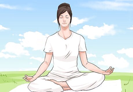 Practice deep breathing. Getting control of your breath will focus your mind, lower your heart rate, ease tension in your body, and lift your mood. Find a quiet and comfortable place to sit before you get started. Close your eyes Inhale slowly through your nose for several seconds Exhale slowly through your mouth for several seconds Silently repeat a word to yourself every time you exhale, like “relax” Repeat 10 times