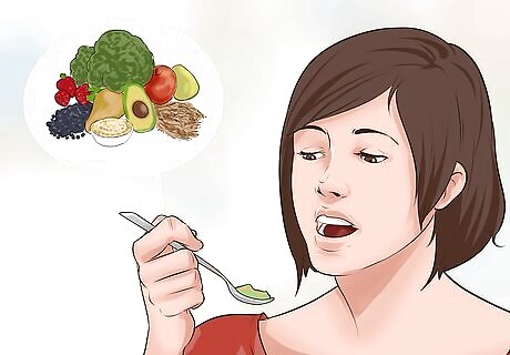 Change your diet. Focus on foods that are good for your body and brain. Alcohol, sugar, and foods that are processed or high in fat may temporarily boost your mood, but you’ll often experience a mood and energy crash soon after consuming them. Instead, focus on Eating fresh fruits and vegetables Consuming healthy fats, like olive oil and nuts Limiting sugar and artificial sweeteners Limiting or avoiding alcohol Eating lean protein and complex carbohydrates Eating small meals and snacks every few hours