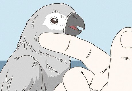 Get a hand-fed baby bird. Look for a young bird. Baby birds will bond with you most easily. Try to find a bird that was hand-fed by its breeder. This bird will be used to human interaction. You can socialize a bird that was not fed by hand. Get the bird while it is still young or buy a bird that has had some socializing with humans.