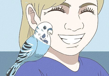 Handle your bird daily. Take your bird out of its cage every day. Rub it affectionately and nuzzle it with your chin to teach it cuddling behavior. Play with it, hold it, and snuggle it as often as you can.