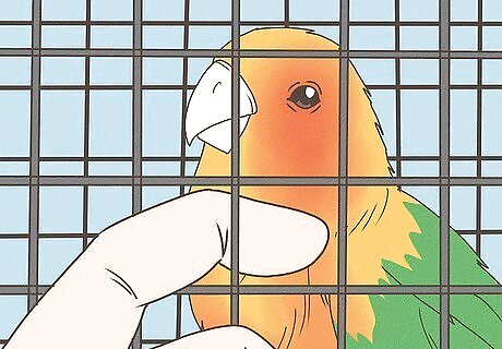 Bond with your bird. Spend time near the cage, talking to your bird. Put your hand on the cage so it gets used to you. Start to finger train your bird. Use your hands to pet and gently pat your bird.