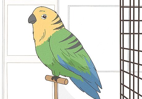 Keep your bird's cage open. Give your bird plenty of time out of its cage. Supervise your bird when it is not in the cage, so it stays safe. Provide it with perches in areas where it is allowed to fly and roam. You can also provide toys for your bird to play with outside of its cage. Try getting a play gym so it can exercise. This freedom keeps birds happy. It also give the bird more opportunities to snuggle with you. Make sure windows and doors are closed so it does not fly out. Keep it away from other pets.