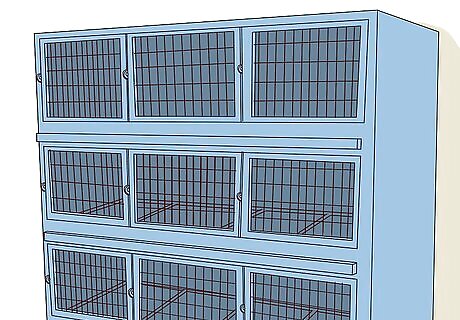 Purchase or build a quail cage. For egg production a lot of businesses like to use wired cages with an open bottom for quick and cleaner disposal of droppings. This makes it easier to avoid infections and diseases spreading, especially in the egg supply. To build this cage you simply need a long wire cage (1 square foot per bird) sitting on a shelved stand above-ground with the There are many other cage options to choose from. For example, you can purchase a coop, rabbit hutch or an aviary as an alternative option.