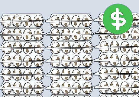 Sell eggs in cartons. You can grab recycled cartons or buy them from a business that produces cartons for eggs. Try a size that is small enough for quail eggs. You can also make your own labels for your egg selling business.
