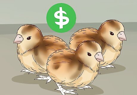 Buy your quail chicks. Prices may fluctuate depending on the place you go to source your chicks, however, you want to be paying 2.50 per chick if you are buying in bulk. A price set at 10 US dollars per chick is very pricey, in this situation you can either negotiate a lower price or turn away. Make sure to bring a cat carrier or cardboard box with you on your journey. The chicks will of course need a place to go. Don't worry about space at this moment because they are being transported.