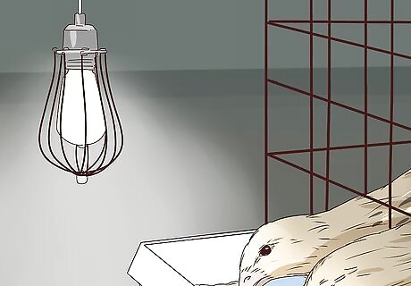 Provide lighting in the cage. If there is no natural lighting in your quails cage it's important to provide artificial lighting by installing light bulbs to run at a maximum of 14 hours a day. This will promote a high-production rate by making your hens think it's day-time. Avoid giving over 16 hours of light per day as they need time to sleep.
