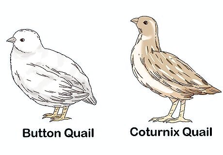 Choose a breed. There are multiple breeds of quail; however, button and coturnix quail are the most common breeds kept and sold. As much as button quails are friendly birds to keep in the aviary, they aren't for egg production or butchering unlike coturnix quail. If you're raising quail for eggs then it is a recognized must to raise the coturnix variety.