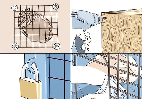Reinforce the cage. Before transferring quails from their brooder and into their cage it is essential to check their new home over for any dodgy areas to ensure the safety of your quail flock. Any holes should be patched up thoroughly. Weak wood should be replaced. A lock should be put in place for all entrances and exits. Pests should be terminated from the cage.