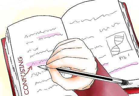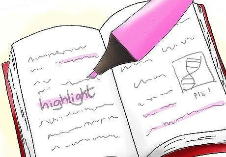 Highlight important words and phrases. Annotating is a way to keep your mind active as you read. Highlighting or underlining important words and phrases can help you to retain more of what you read and it will also make it easier to go back to find important passages later on. Make sure that you always read with a highlighter and pencil on hand. Underline or highlight things that are confusing, interesting, important, or that you want to ask questions about in class.