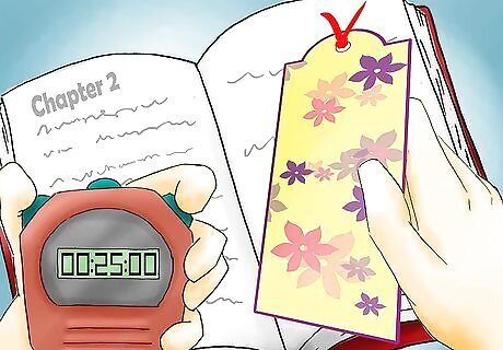 Complete the reading in small chunks. You can also improve your reading comprehension by reading a text in smaller chunks and giving yourself breaks. For example, you could follow the Pomodoro system suggestion to take a quick break every 25 minutes. Set a timer for 25 minutes, read until it goes off, and then take a five minute break. Another option is to set a goal for how many pages you want to read. You could set a goal to read 10 pages and then give yourself a five minute break after you have done that. Try getting up and walking around or stretching for a few minutes during your breaks. You can also check your social media profile, watch a short video, or look up something that has been on your mind.