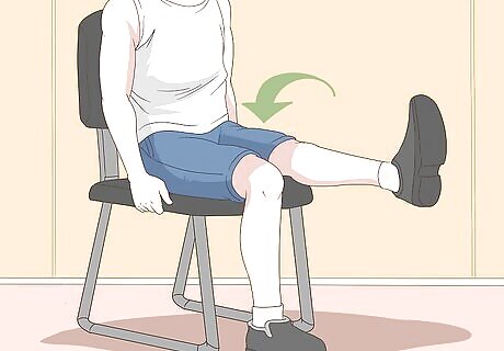 Sit in a chair and lift your feet up one at a time to strengthen your quads. Sit up straight in a chair with your feet flat on the ground. Lift one leg slowly up from the floor until it is sticking out straight in front of you. Lower it slowly back to the ground. Repeat this 10 times on each leg once a day. Practice good posture as you sit in your chair in order to engage the correct muscles.