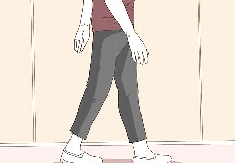 Avoid exaggerating your stride as you walk. Try not to reach out unnaturally far with your front leg as you walk. Instead, keep your gait comfortable and avoid straining your legs or knees to step forward. The length between 1 step is different for everyone. Let your body walk naturally and see what is comfortable for you.