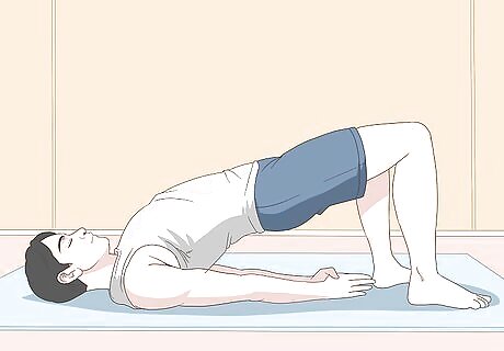 Practice glute bridges to strengthen your legs and rear. Lie on your back with your feet tucked toward your rear. Lift your hips up toward the ceiling and bring them back down slowly. Repeat this exercise 10 times once a day.Tip: Make sure to engage your core while you do this exercise so you don’t strain your back.