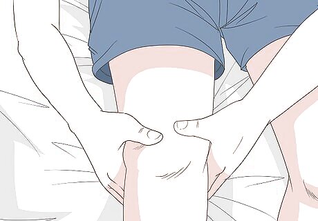 Self-massage your knee joints to reduce pain and stiffness. Massaging your knees can help improve circulation and relieve pain and stiffness in your joints. To massage your knees, wear comfortable, loose-fitting pants or shorts. Sit with your feet flat on the floor and use deep, gliding strokes with the heel of your hand to massage your thighs and knees. Next, gently massage around your knees with your fingertips. You can also purchase self-massage tools that soothe your knees with heat, vibration, or gentle compression.
