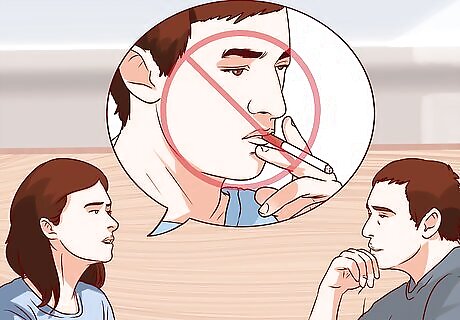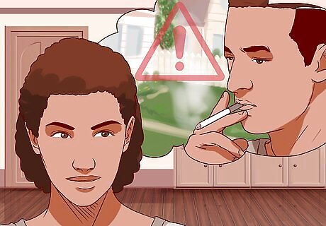 Refrain from allowing anyone to smoke in your home or car. One way to eliminate thirdhand smoke is to get rid of all sources of smoke in your life. Smoke can linger on your clothes and hair even if you don't smoke in the house, so don't smoke in your car either. Don't allow any visitors to smoke in your home or car. Ask them to step outside if they must smoke. This includes cigarettes and electronic cigarettes.