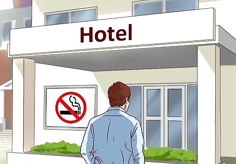 Stay at smoke-free hotels. When you travel, consider staying at smoke-free hotels. Ideally, you should stay in a hotel that has always been smoke-free. Hotels that have been converted to smoke-free facilities may still smell like smoke and have thirdhand smoke in the air or in furniture. If you are visiting a friend who smokes, choose to stay in a hotel instead of the home of a smoker.