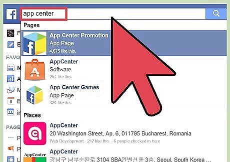 Type “App Centre” into the Facebook search bar. At the top of the page, click on the first link. At the top of the page, you'll see “Find Games,” “Your Games,” and “Activity.”
